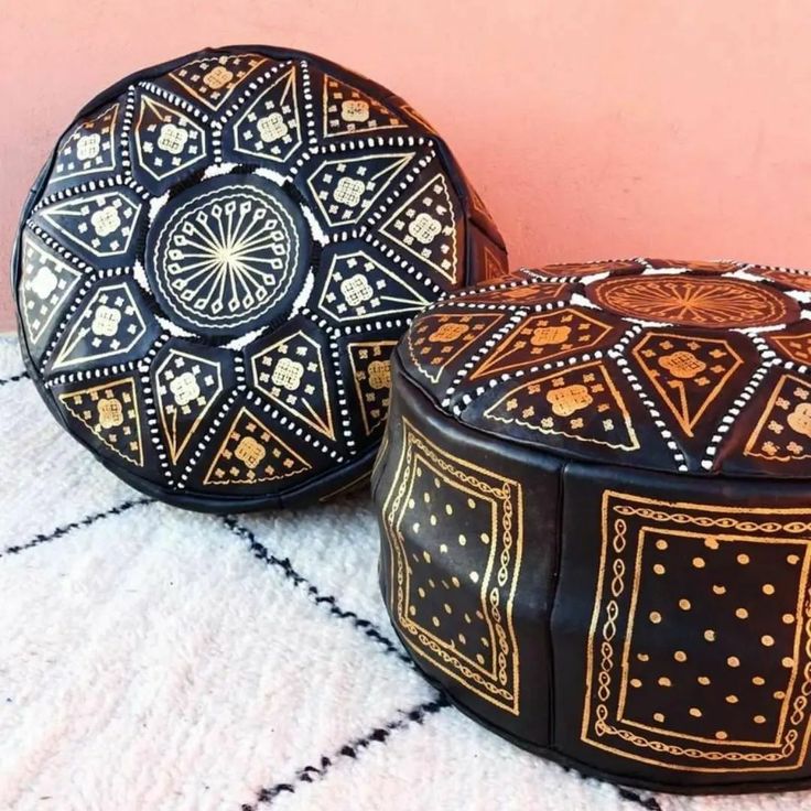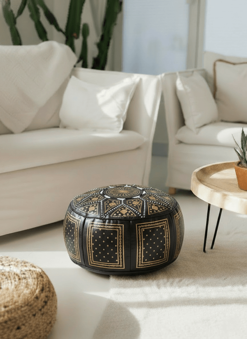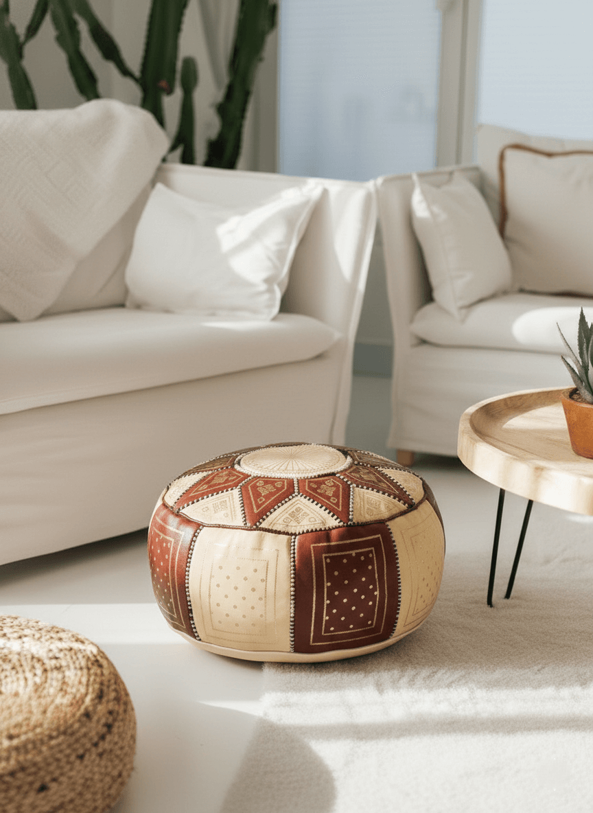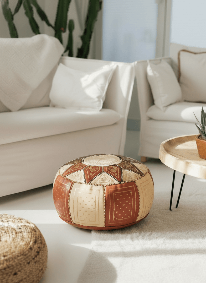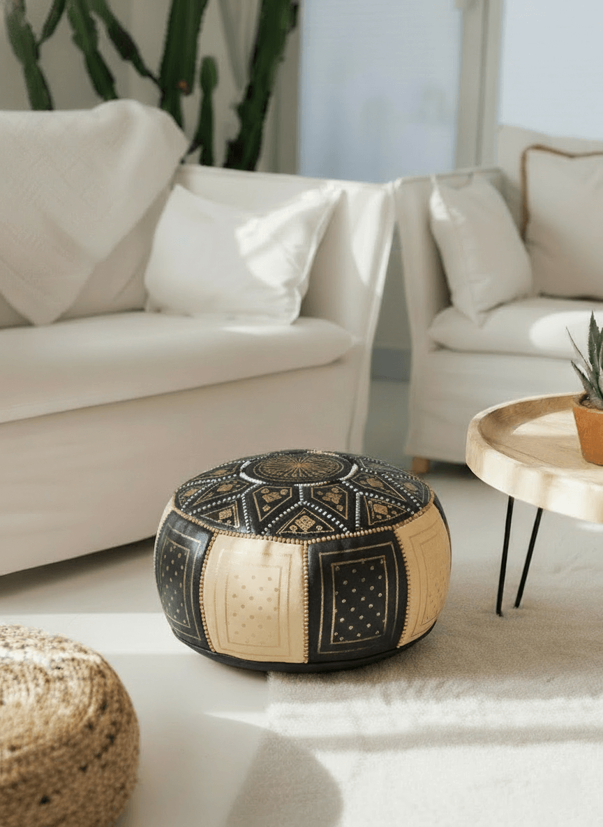 Pouf Rond en Cuir de Fès – Design Étoilé