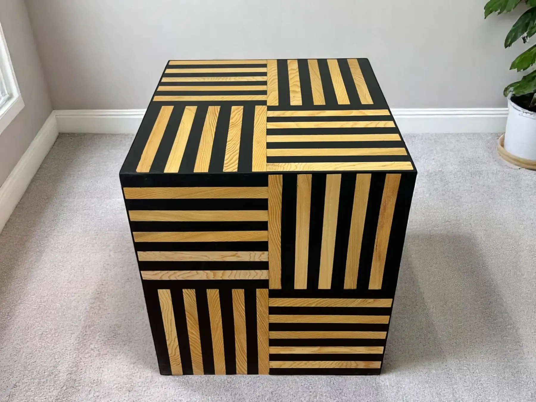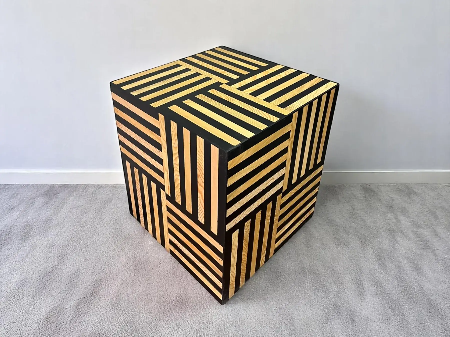 Table Cube « Sndouk Pla » – Bois de Noyer et Résine
