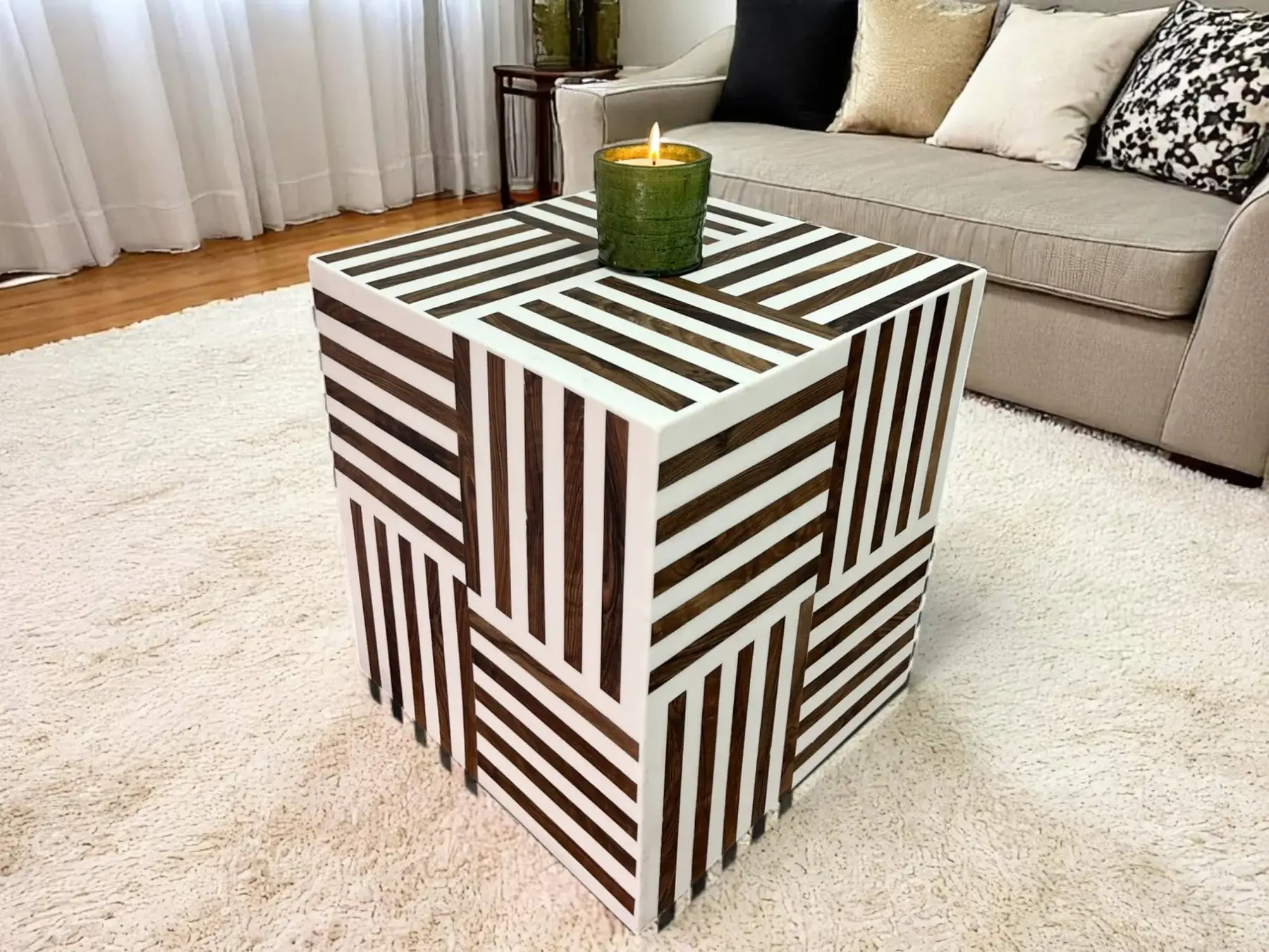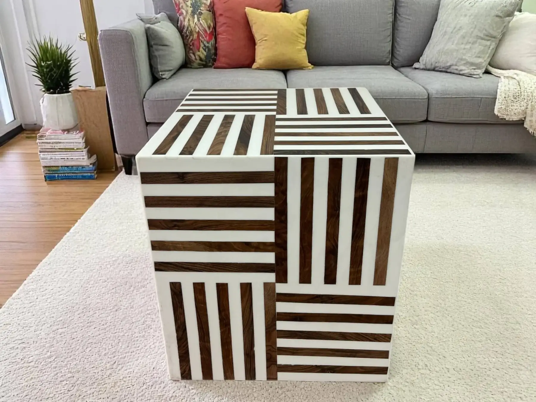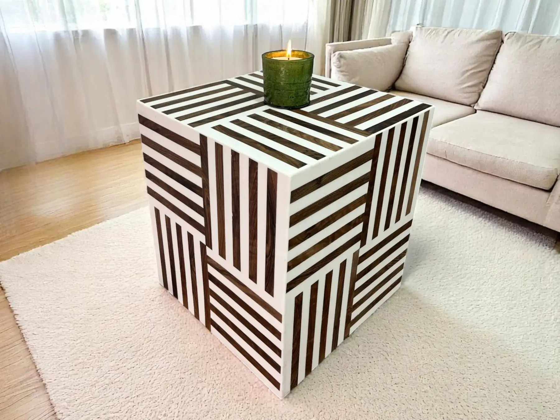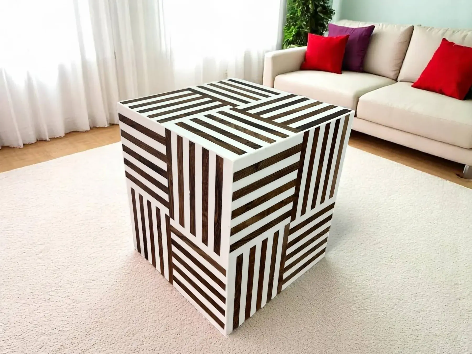 Polyvalence et Style : Cette table est incroyablement adaptable ! Utilisez-la seule comme table d’appoint, table de chevet ou support décoratif. Pour une table basse originale et modulable, n’hésitez pas à regrouper plusieurs cubes.